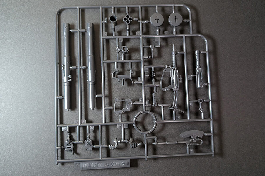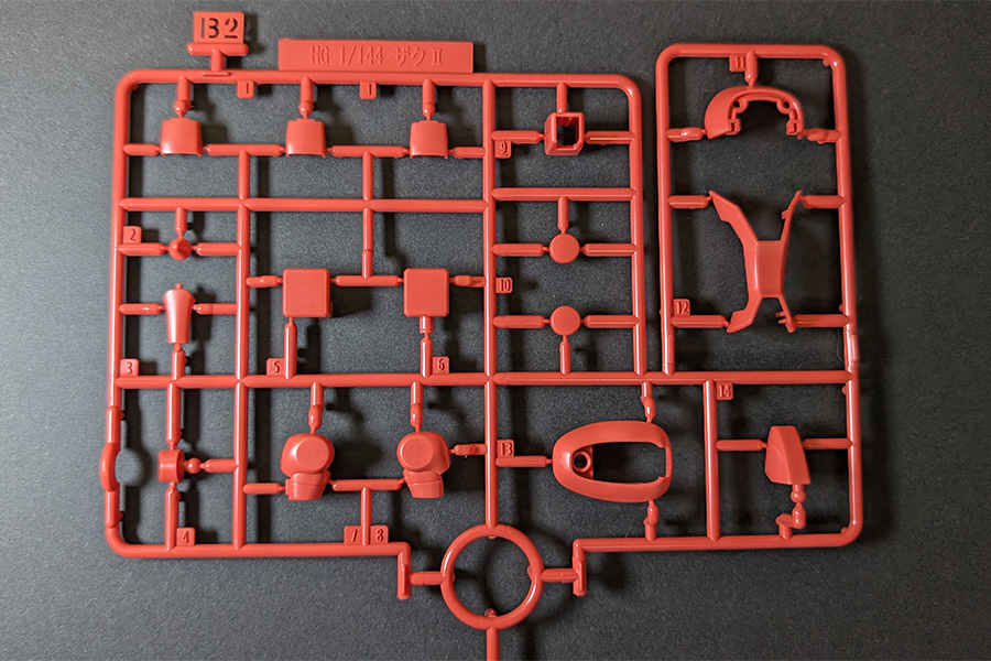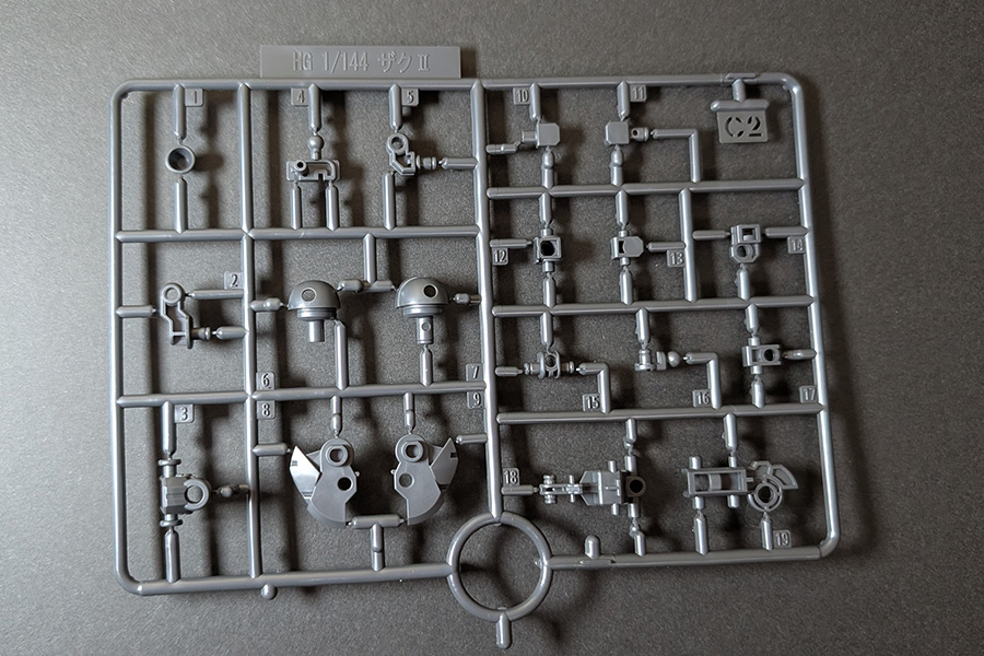 モノアイはシールが付属していますが、今回は使用せず後で塗装する予定です。全体的にパーツ構成はシンプルで、HGらしい扱いやすさを感じました。