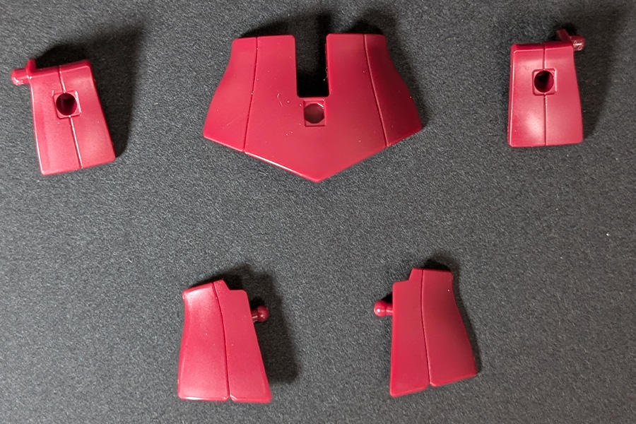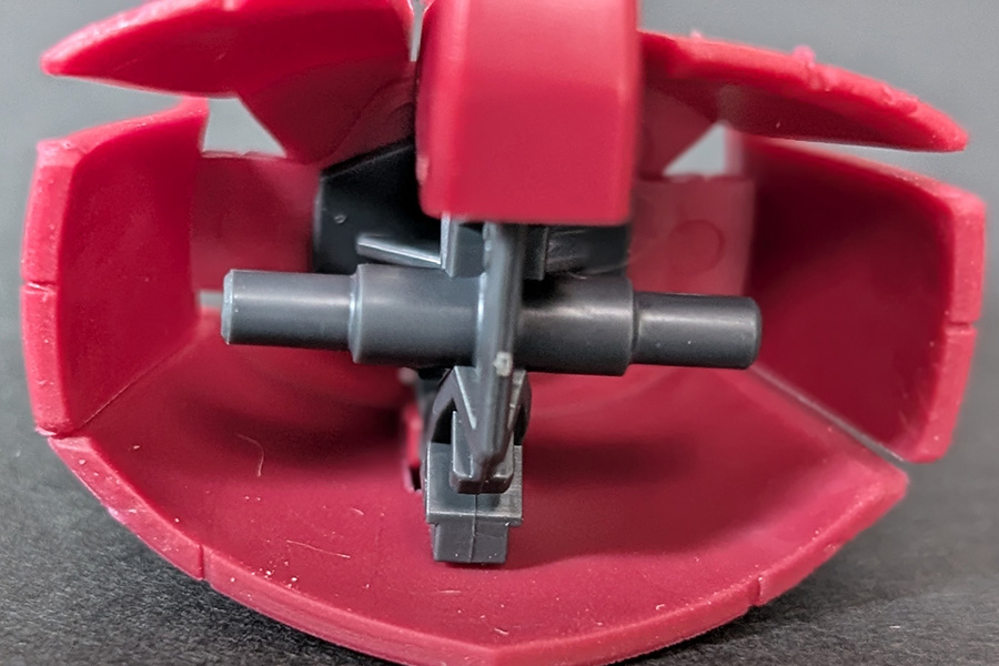 左肩のトゲ(スパイクアーマー)はドーム型のところは1パーツとなっており、前後のトゲは別パーツで差し込むようになっています。